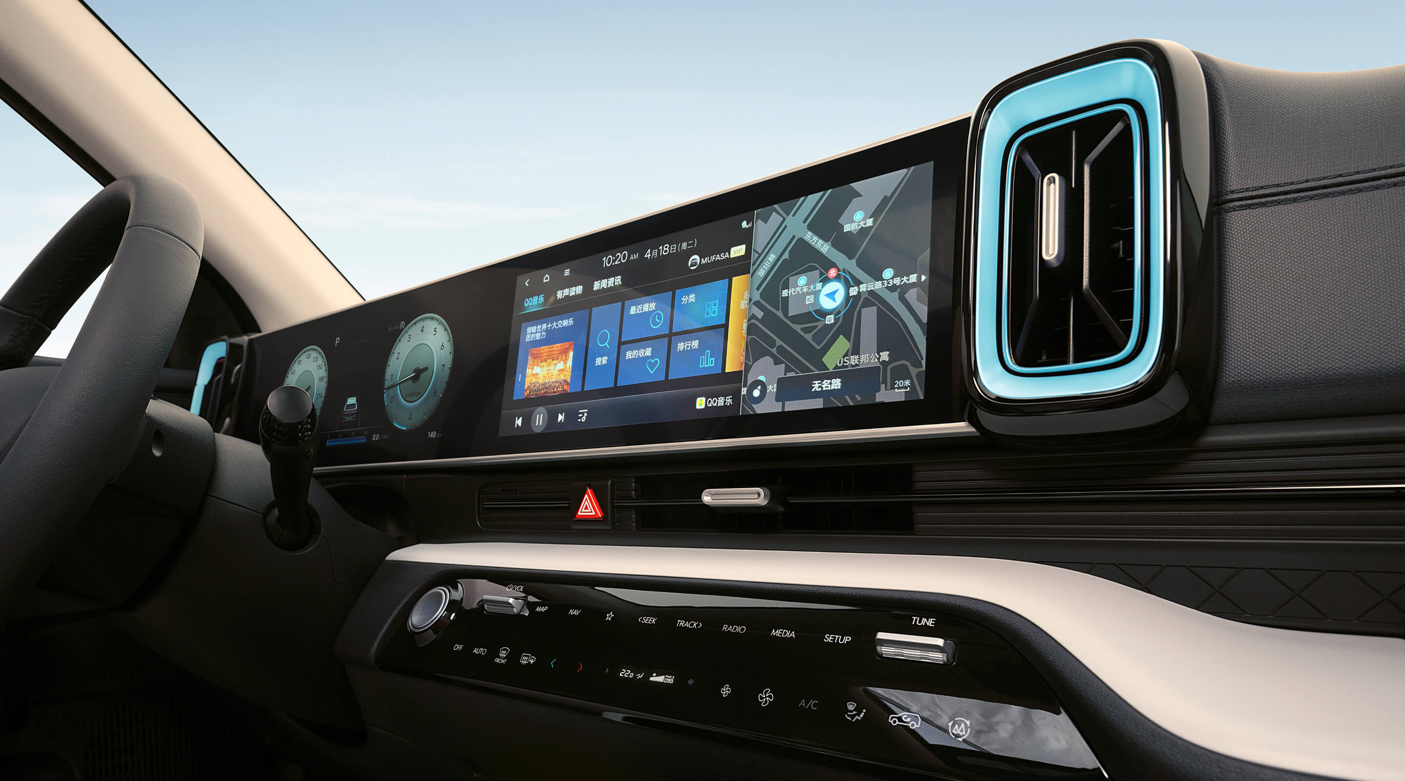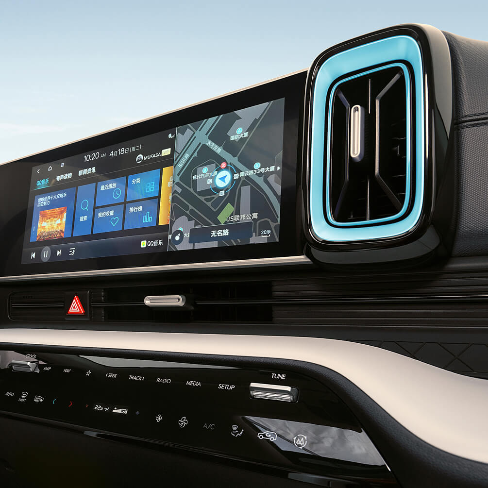 智能网联系统4.0,沉浸式双区语音交互体验。超大智慧双联屏,全触控设计,屏幕成像清晰,